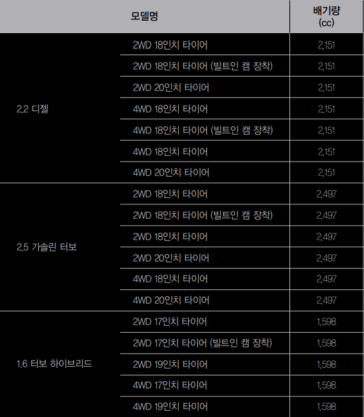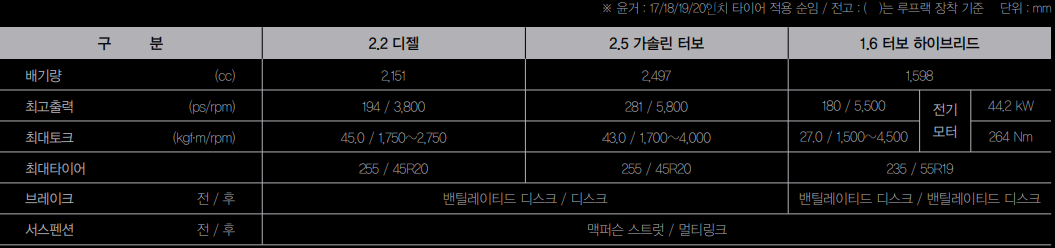 쏘렌토는 2.5 가솔린, 2.2 디젤,